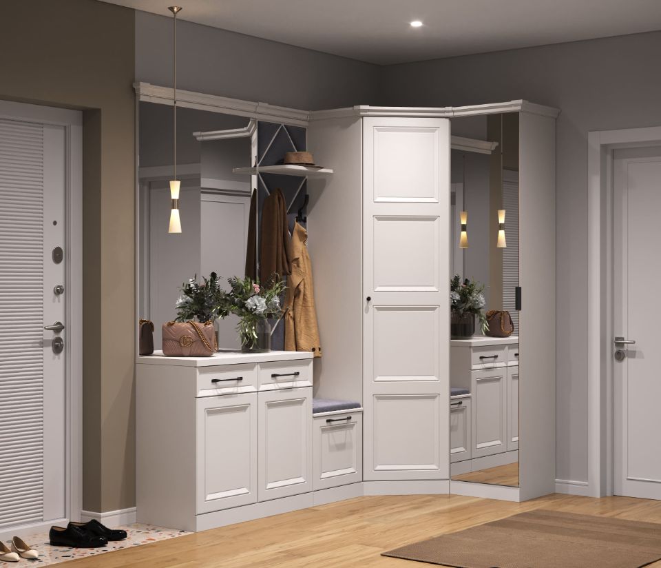 Изысканная и функциональная прихожая отлично адаптируется под размеры любого помещения . Многообразие модулей: обувницы, шкафы,тумбы с вешалкой или зеркалом- поможет создать интерьер мечты.