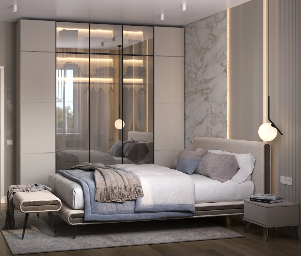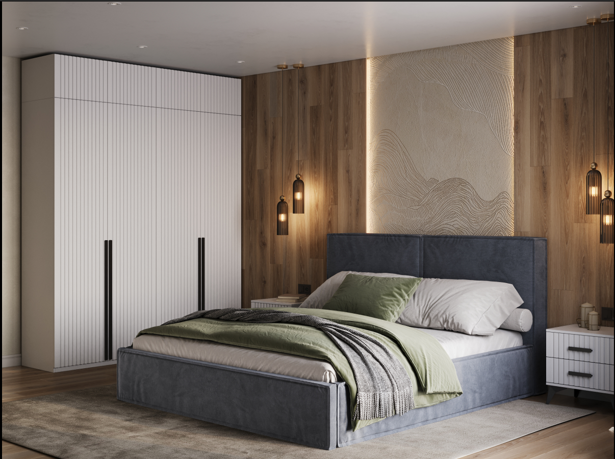 Спальня Пиксель выполнена в современном минималистичном стиле.