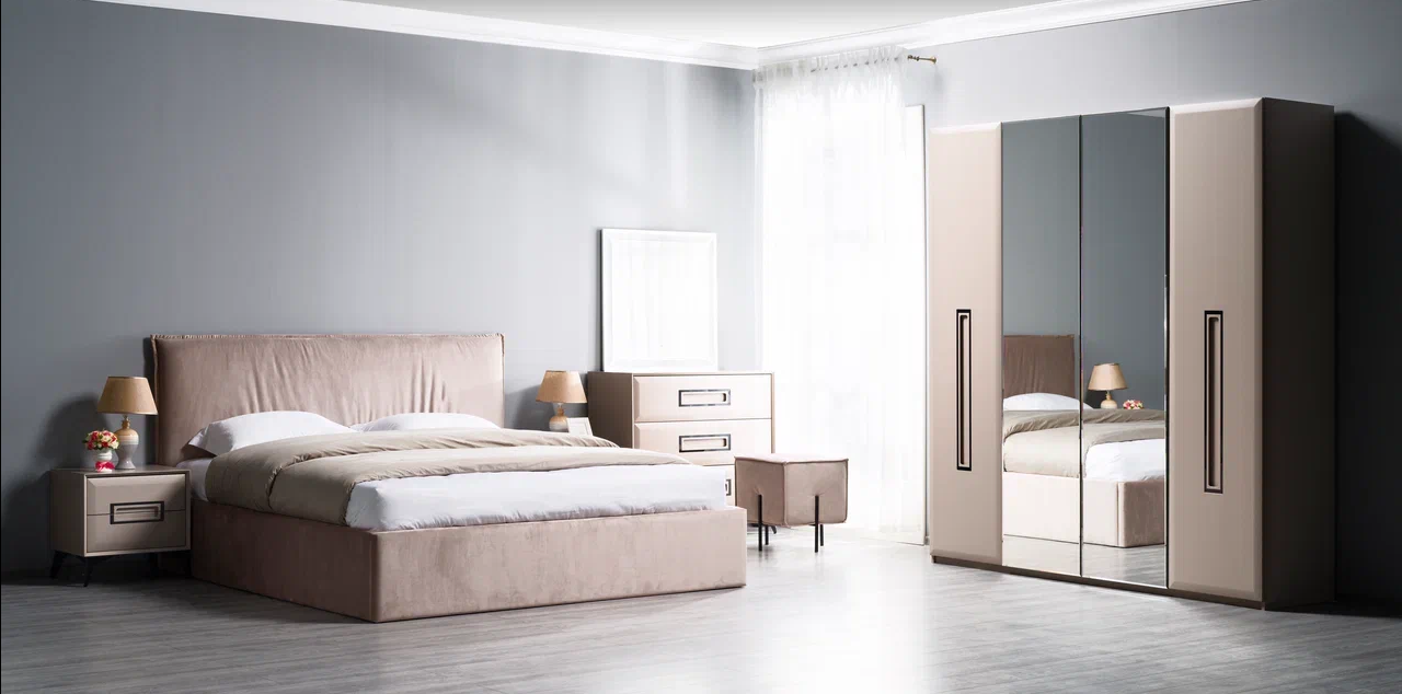 Набор мебели для спальни Анастасия, современная классика, полная гармонии, уюта и красоты. Ее универсальный стиль актуален всегда. Плавные линии придают комплекту завершенность и шарм.