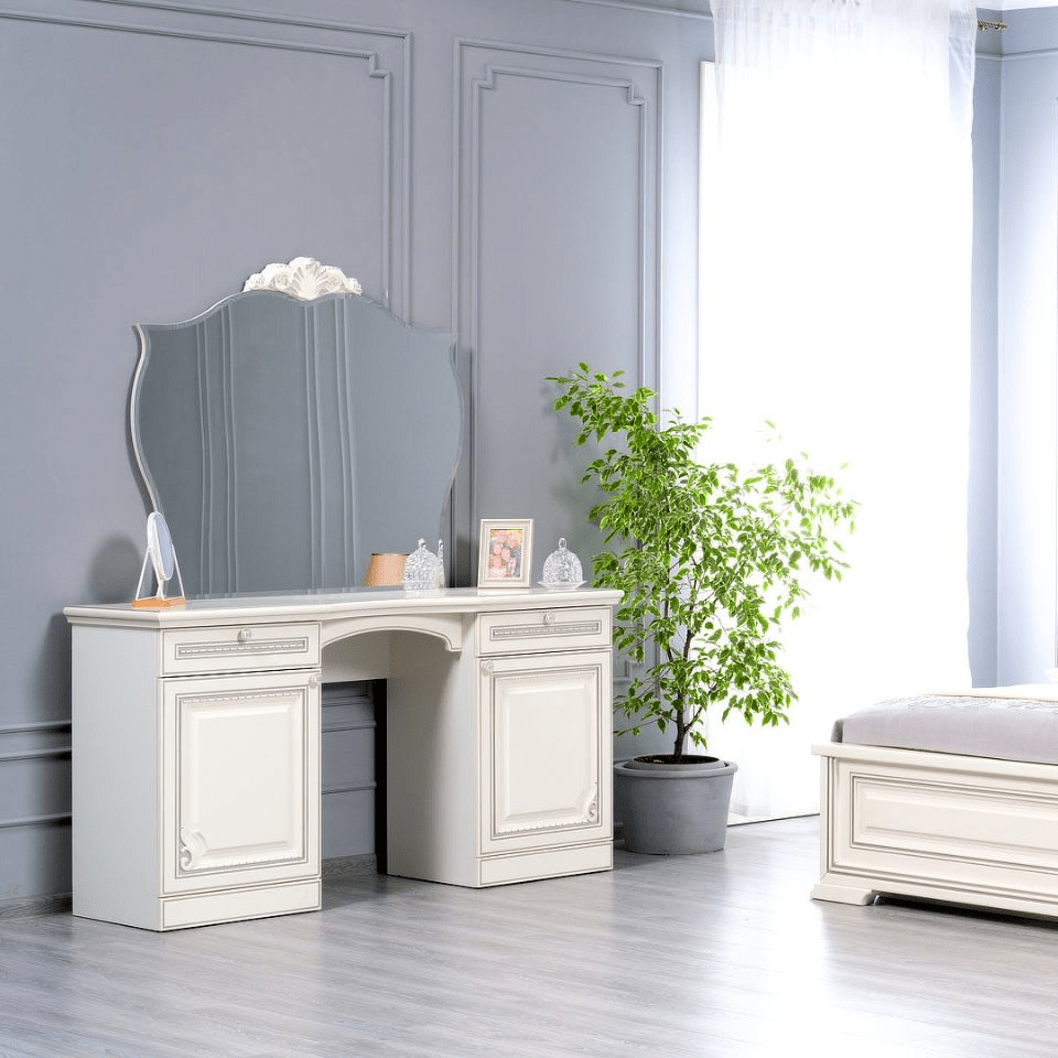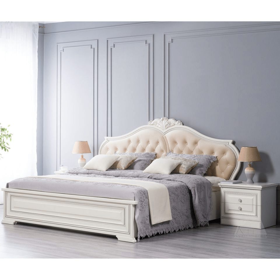 Incanto в переводе с итальянского - очарование. Этот поистине сказочный комплект мебели создаст атмосферу уюта в вашем доме. Спальня выполнена из высококачественного МДФ и покрыта несколькими слоями эмали и лака премиум класса марки "Renner", декорирована изготовленными вручную элементами из пенополиуретана с покрытием из серебряной патины.