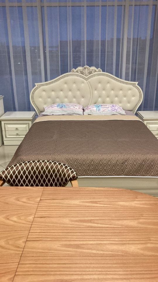 Шарм комплекту придает мягкое изголовье кровати, оно не только придает эстетичный вид, но и практично в использовании-обивка из антивандальной ткани устойчива к истиранию и появлению загрязнений. Модульная система позволяет создать спальню вашей мечты с функциональным и практичным шкафом, кроватью с ортопедическим основанием, тумбочками для мелочей, трельяжем, зеркалом, вместительным комодом.
