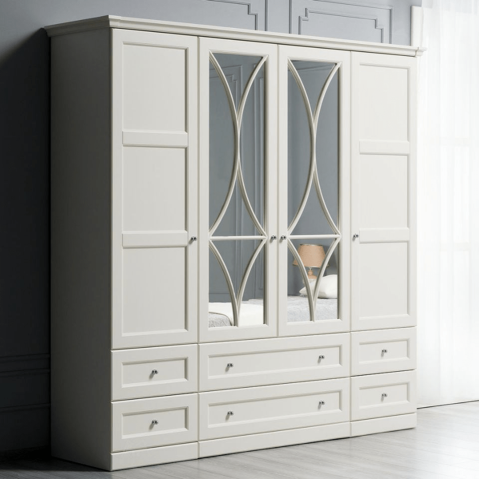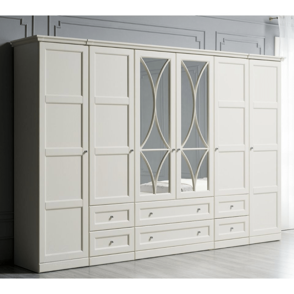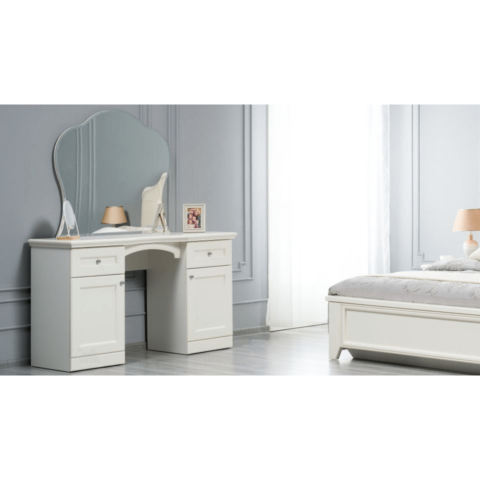 Спальня Каталея создана с акцентом на изысканность и функциональность. Оригинальная отделка шкафов, два варианта изголовий и подзеркальников, ручки цвета серебра делают коллекцию универсальной. Она подойдёт как для любителей классики, так и более сдержанного неоклассического стиля.